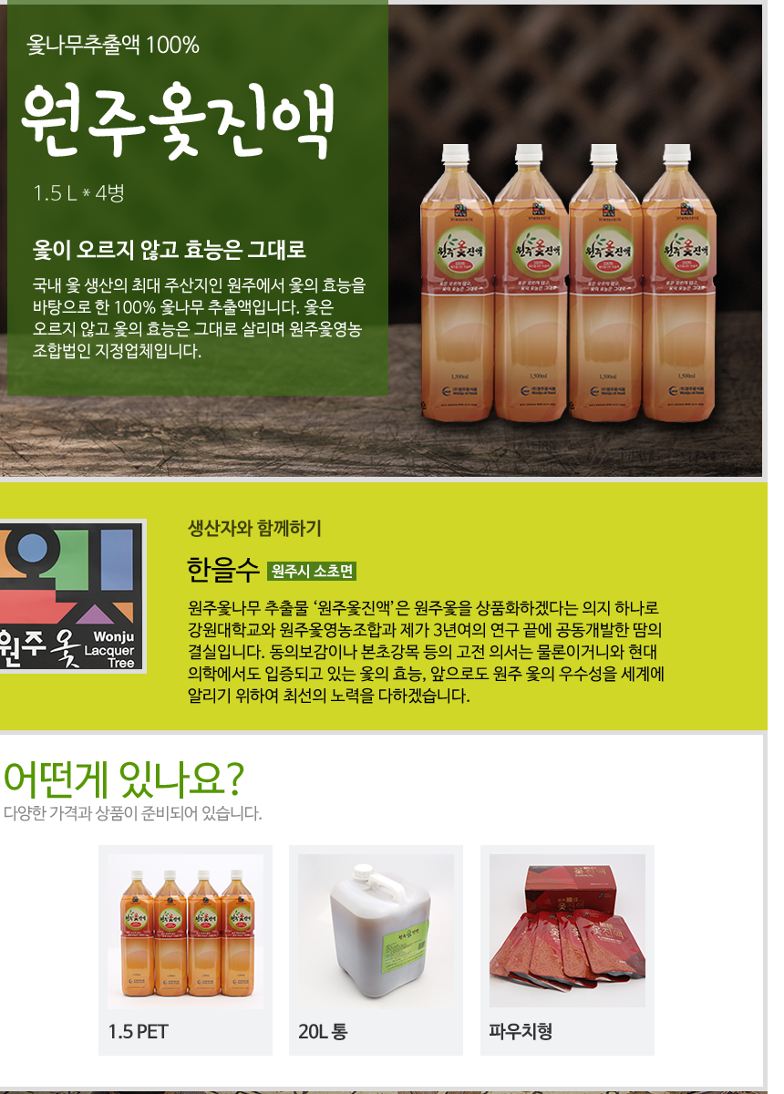 원주옻진액 1.5L x 4병(국내산/강원도 원주)